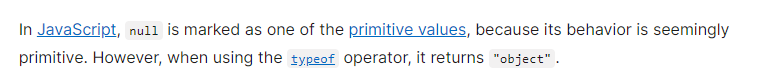 *undefined와 null을 typeof 연산자로 변수의 타입을 비교하면 null타입은 object로 나옴! (초기 자바스크립트 버그)
